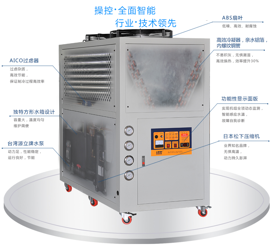 開放式冷水機(jī)精選公司開發(fā)出的高智能PLC、PC級(jí)電腦控制系統(tǒng),可做遠(yuǎn)程監(jiān)視與控制,具有自動(dòng)加卸載、定時(shí)開關(guān)機(jī)以及記錄故障原因等多重功能;操作簡單,主機(jī)與電源接駁。故障率低,安全系數(shù)高,安裝簡單,系統(tǒng)控制可即時(shí)調(diào)整,直觀可靠。